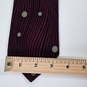 Alan Cherry San Babila Silk Tie Wine Black W/Beige Circles Italy VTG W 3.5 L 56"