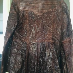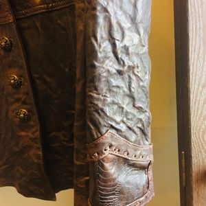 Alan Michael USA custom made ‘Kimmy style’ leather jacket. Italian goat crinkle with inlaid ostrich leg. Absolutely exquisite quality, detailing and buttons.