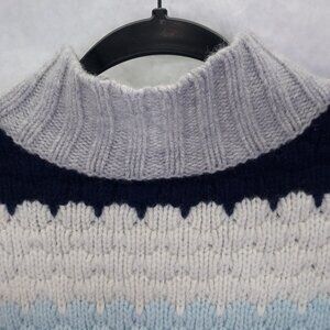 Alashan Sweater Womens XL Merino Wool Pullover Crochet Knit Blue White Mock Neck