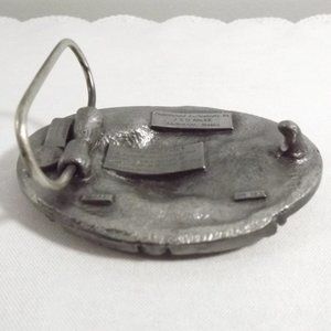 The buckle is 3 1/8" wide by 2 1/4" tall at the fullest parts.