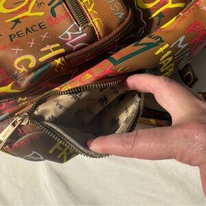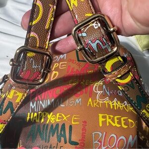 Stand out with this brand new with tags Alba mini backpack in a bold burnt orange with fun multi-color graffiti lettering. Compact yet roomy, it’s designed with plenty of storage options, including multiple inner and outer pockets. Perfect for everyday use, travel, or adding a pop of color to your look!