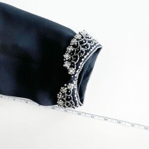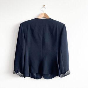 Albert Nipon Evening Dark Navy Jacket Blazer Sequin & Beading On Lapels & Cuff 14