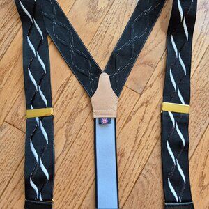 Albert Thurston Black & White Waves Suspenders Button End