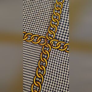 Vintage Albert Nippon scarf with a checkered pattern and chain accents,each square has a different pattern houndstooth,gingham etc Perfect for a stylish look.