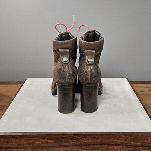These ankle boots, meticulously handmade in Italy, feature soft calf suede and a natural calf lining for superior comfort. With a 3.5-inch wood stacked heel, a 1-inch platform, and a rubber-reinforced bottom, they blend style with practicality. The padded leather ankle detail ensures extra support and cushioning.
