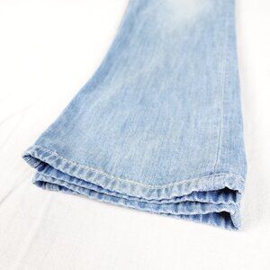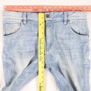 Light wash with nice looking fading. Great condition, no stains, no holes, light wear. Size tag faded, fits approx. 34x35 - see photos for measurements.