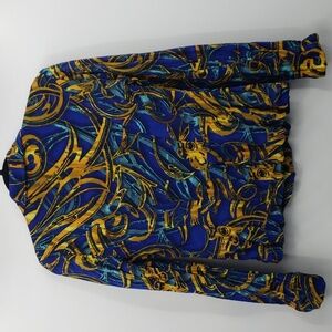 Alberto makali | Blue with yellow pattern long sleeve blazer top - size small