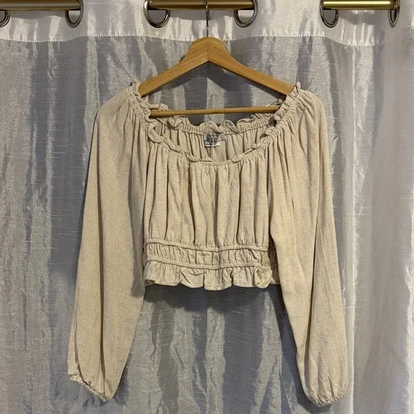 Alcott Beige Ruffled Cropped Blouse