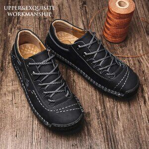 UPPER & EXQUISITE WORKMANSHIP- Our upgraded casual shoes are made of genuine leather on all surfaces for sturdy and durable wear. Purely hand stitch are firm and not easy to break, metal buckles on the sides and heel add a retro-casual look. Adjustable lace-up closures assure a personal fit and reinforced with 2 rows of metal, making it won't fall apart