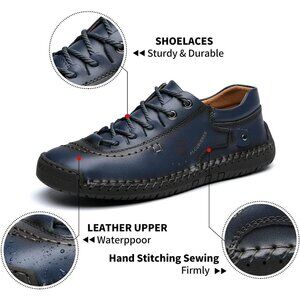 UPPER & EXQUISITE WORKMANSHIP- Our upgraded casual shoes are made of genuine leather on all surfaces for sturdy and durable wear. Purely hand stitch are firm and not easy to break, metal buckles on the sides and heel add a retro-casual look. Adjustable lace-up closures assure a personal fit and reinforced with 2 rows of metal, making it won't fall apart