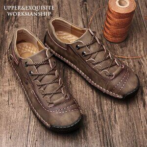 UPPER & EXQUISITE WORKMANSHIP- Our upgraded casual shoes are made of genuine leather on all surfaces for sturdy and durable wear. Purely hand stitch are firm and not easy to break, metal buckles on the sides and heel add a retro-casual look. Adjustable lace-up closures assure a personal fit and reinforced with 2 rows of metal, making it won't fall apart