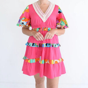 Alden Adair Begonia Lace Pink Floral Sabrina Tropical Summer Mini Dress XS NWT