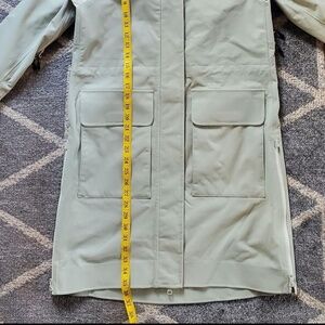 Rain coat by sustainable Canadian brand Alder Apparel in sage. Worn for one week on a trip to Vancouver where it kept me dry even in the heaviest downpours. The colour isn't right for me, which is such a shame because Alder Apparel just shut down and this coat is no longer available. Fits a bit large for a small so I could fit layers underneath.