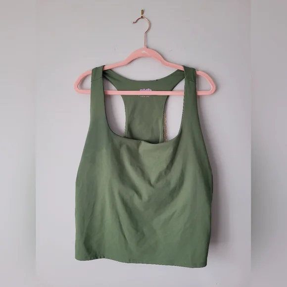 Premium athletic fabric racerback tank top with built in shelf bra perfect for any summer outting