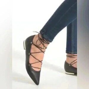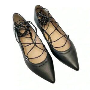 Aldo Alize Black Leather Ballet Flats Pointy Toe Lace Up Ankle Ties Size 7.5