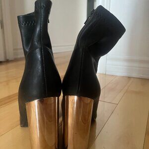 ✨ Aldo Black Leather Booties – Size 8 – Gold Heel