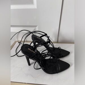 Aldo | Black Pointed Toe Lace Up High Heel Sandal | Size 5