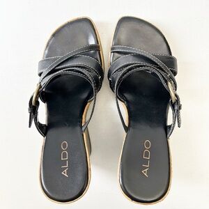 Aldo Black Strappy Wedge Sandals with Espadrille Detail
