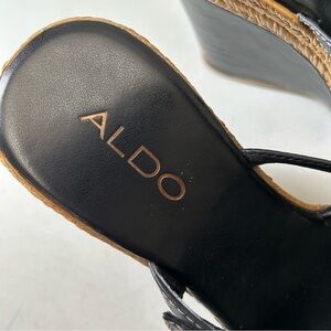 Aldo Black Strappy Wedge Sandals with Espadrille Detail Size 37