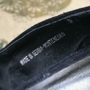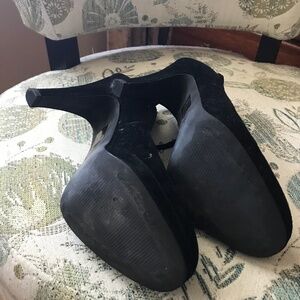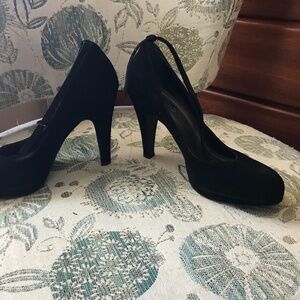 Gorgeous heels with removeable, adjustable ankle strap. Black Suede type material. Euro size 39. Almond shaped toe. Very good condition, only wore a couple times and stored in a dust bag. No original box, but will ship in a different box. Smoke free home.