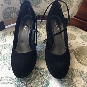 Aldo Black Suede Material Almond Toe Ankle Strap Heels - size 39