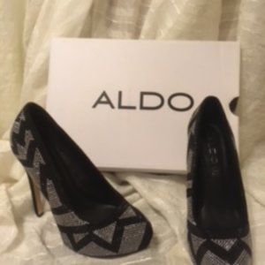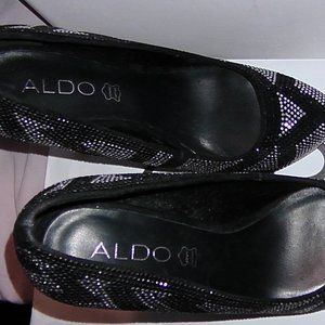 Aldo Black and Silver Metalic Studded Heels