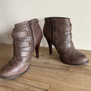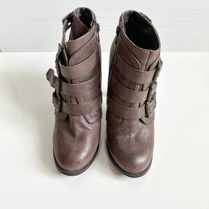 Aldo Brown Leather Ankle Boots Womens Size 8 Buckles High Heel
