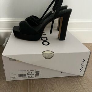Aldo Chicglimmer Black Strappy Platform Heels 4 inch