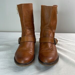 Women’s cognac brown Aldo Combat Moto Western Boots.