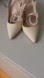 Elegant cream 4” heels with pointed toe. Suede like material. Features a sleek strap design with gold caps. Some scuffs and stains from wear, as shown in pictures and video. Overall great condition.