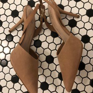 Soft and sexy tan pumps from Aldo. Size 10. Material is a soft leather or a fine suede. Wore on one occasion for an outdoor wedding. There are a few scuff marks on the inside and outer edges.
