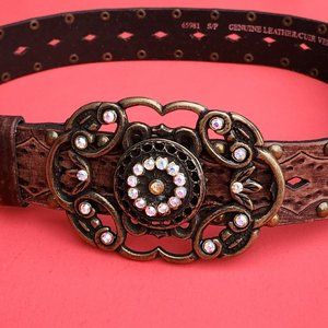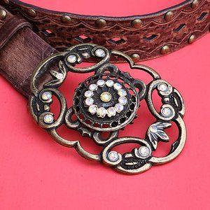 Like new condition. Aldo leather studded belt in brown colour. Size S. Beautiful big buckle with sparkley crystals. It is 37 inches long excluding buckle. It is 1 1/2 inches wide.