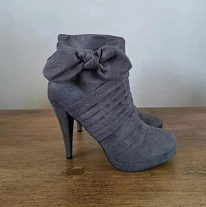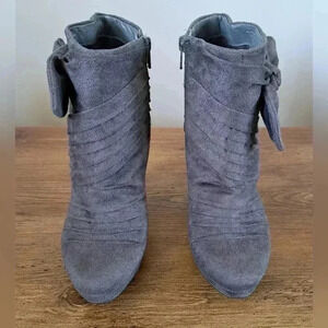Aldo Grey Heeled Ankle Boots Faux Suede Women's Size 7.5 (38)