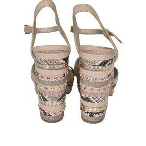 Aldo Hugs Snake Embossed Block Heel Sandal Bone Size 7.5