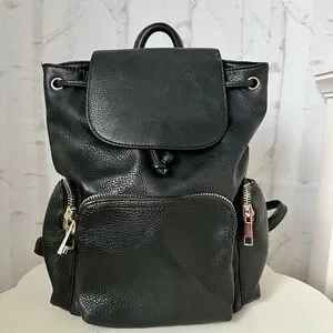 Aldo leather mini black backpack with gold zippers, Main compartment has drawstring closure and magnetic snap. Adjustable straps. Let's bundle!