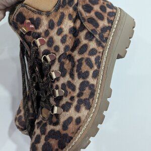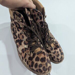 Aldo Leopard Print Fuzzy Boots Tan Brown Size 7.5