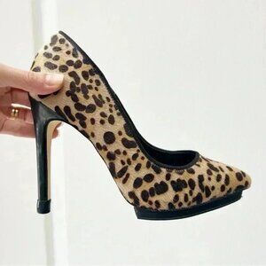 Make a statement with these stunning Aldo High Heel Pointed Toe Platform Pumps in a classic brown and tan leopard print.