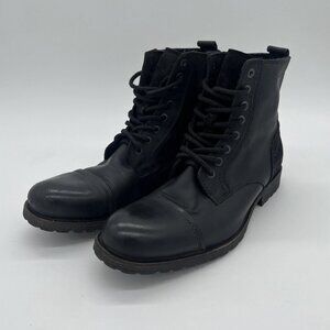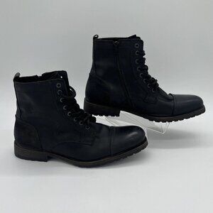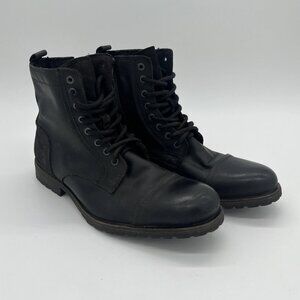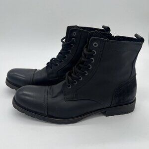 Aldo Men's Black Leather Boots Lace Up Side Zipper Cap Toe Size 12