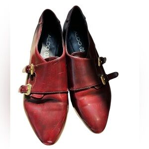 Aldo Pointed Toe Buckle Flats-Red-Size 7
