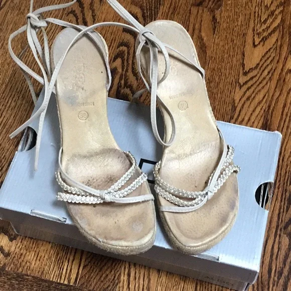 They have been worn and enjoyed but ready to go to someone else. There are signs of wear in areas that are not visible when the shoes is worn. Excellent quality made in Spain sandals