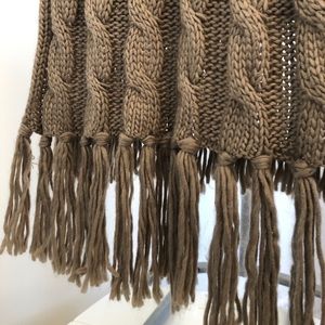 Long Aldo blanket scarf, perfect for bundling up in the winter. Fabric is beige and knitted with tassels on each end. One size.