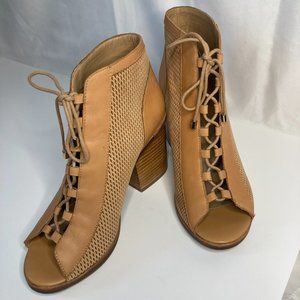 Aldo 'Sevilan' Open Toe Bootie with Lace Ups Size 7 1/2 Tan and Mesh Leather
