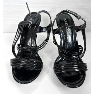 Aldo Strappy High Heel Sandals Womens Size 39 Black Shiny