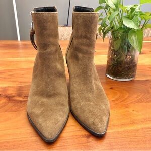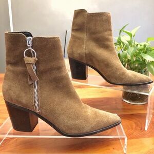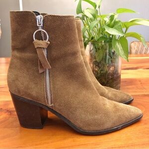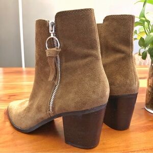 Aldo Suede Genuine Leather Boho Brown Earthy Toned Minimalist Contemporary Chunky Block Heels Ankle Boots Booties.