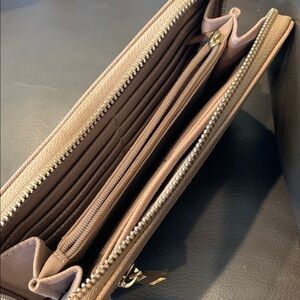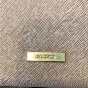 This Aldo wallet features a sleek rectangular design with a zip-around closure, crafted from a smooth leather-like material. Its minimalist style makes it a versatile accessory for any occasion. Excellent condition! Measurements are