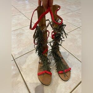 Aldo Tharesa Gladiator Fringe Boho Flat Western Cowgirl Sandals Size 7.5