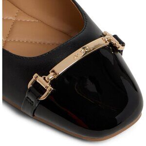Aldo Womens Black Synthetic Closed Square Toe Low Wedge Heel Leanne Ballet Flat