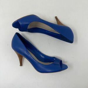 Aldo Women's Peep Toe Pump Stacked Heels Slip On Leather Blue Size EU 38