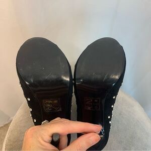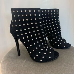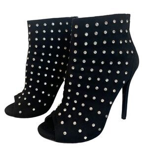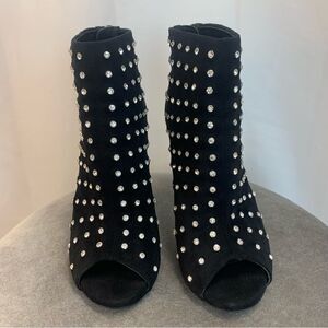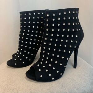 Aldo black crystal rhinestone embellished peep toe high heel ankle boots Sz 7