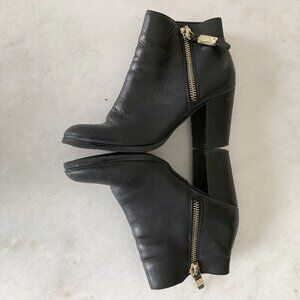 Aldo black leather ankle boot, gold zippers, chunky heel ankle boots / booties